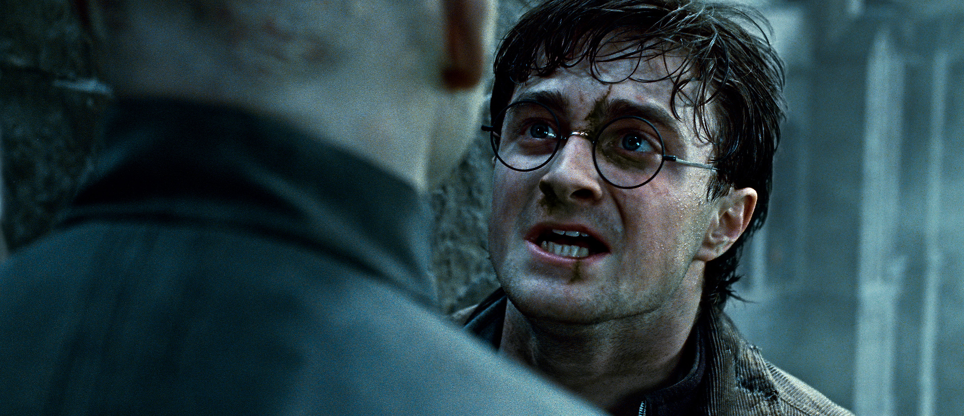 Similarly in The Shining a close up is used but this time it is a fully focused shot and the face of the character is framed between two pieces of the wooden door, drawing more attention to to it. The strong facial expression clearly show up and are evident to the audience.